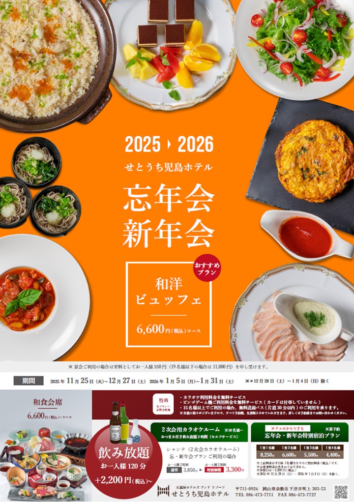 【せとうち児島ホテル】 忘年会・新年会のご案内