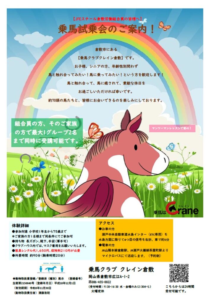 【乗馬クラブクレイン倉敷】 乗馬試乗会のご案内