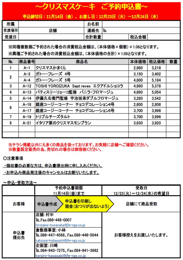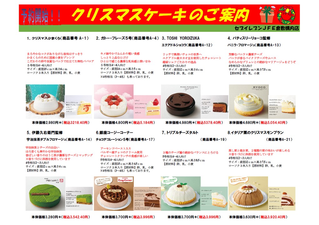 【JFE西日本ジーエス㈱】クリスマスケーキのご案内について